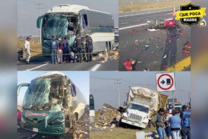 Un choque múltiple entre una unidad de transporte de pasajeros, vehículos particulares y un tortón colapsó ambos sentidos del Libramiento Bicentenario, a …