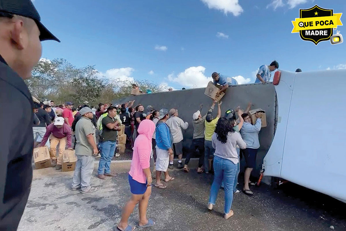 VUELCA TRÁILER Y DESATA RAPIÑA EN CAMPECHE