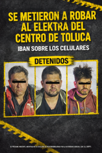 SORPRENDEN A TRES SUJETOS TRAS PRESUNTO ROBO EN ELEKTRA DEL CENTRO DE TOLUCA