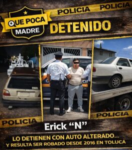 LO DETIENEN CON AUTO ALTERADO… Y RESULTA SER ROBADO DESDE 2016 EN TOLUCA