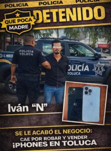 SE LE ACABÓ EL NEGOCIO: CAE POR ROBAR Y VENDER iPHONES EN TOLUCA