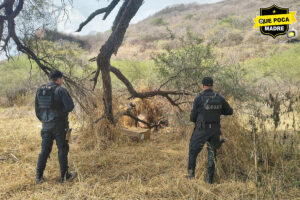ASEGURAN ARMAMENTO Y CHALECOS BALÍSTICOS ABANDONADOS EN PASTIZAL DE LA LIBRE GUADALAJARA–CIUDAD GUZMÁN