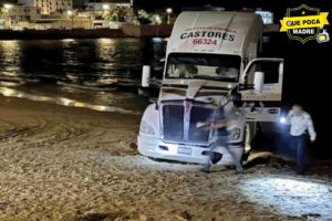 Un tractocamión de carga pesada ingresó directamente a la zona de arena, en el puerto