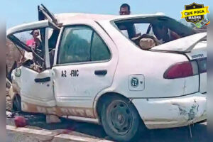 Fueron localizados dos cadáveres al interior de un taxi blanco con amarillo abandonado sobre el