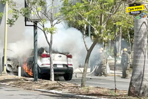 Autoridades reportaron que una camioneta se incendió mientras circulaba por la avenida Circuito Colonias, en