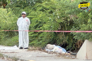 Un bulto oscuro abandonado entre la maleza de la avenida 20 de Noviembre, en Cancún,