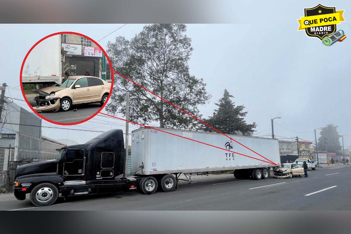 Una mujer perdió la vida por la mañana de este sábado, tras quedar prensada durante un choque contra un camión de carga, sobre Boulevard Aeropuerto, a una altura de San Pedro Totoltepec, Toluca, Edoméx.