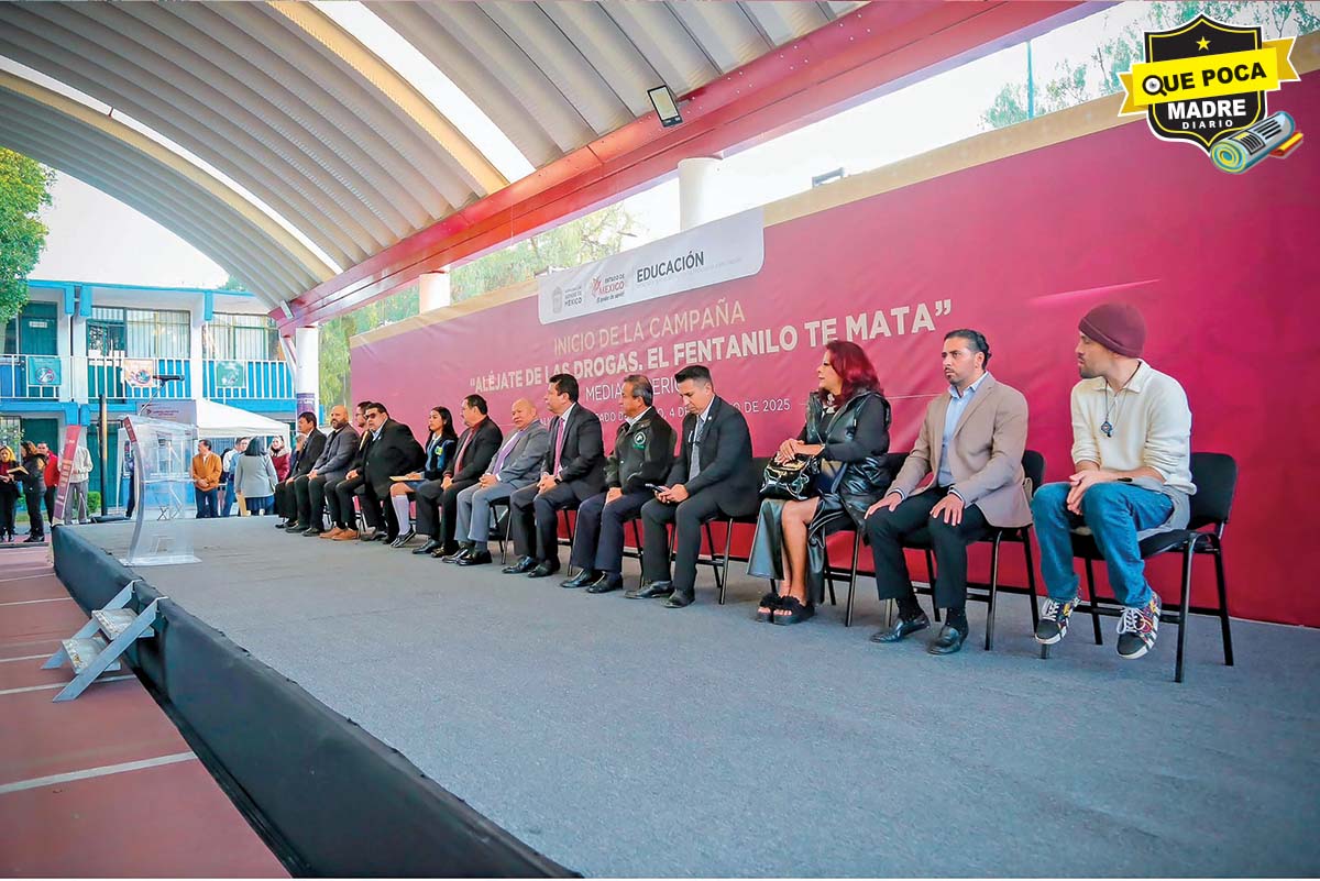 Para concientizar a 652 mil 869 estudiantes de nivel medio superior sobre los riesgos del consumo de drogas y otras sustancias nocivas, el GEM puso en marcha acciones preventivas, como parte de la campaña nacional “Aléjate de las drogas. El fentanilo te mata”, en planteles educativos mexiquenses.