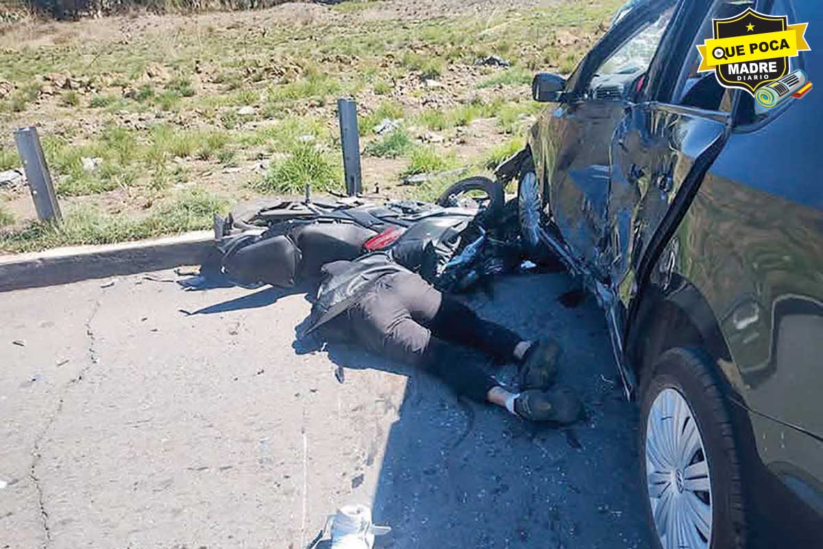Testigos del hecho afirman que el carro negro se cruzó la vialidad y el motocilista venía a exceso de velocidad, motivo por el cual terminaron impactando.