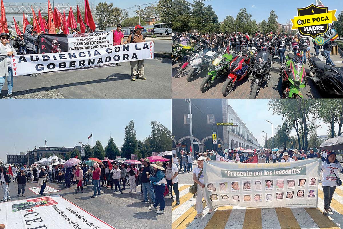 Desde temprana hora, integrantes de la Coordinadora de Escuelas Democráticas del Estado de México (CEDEM), la Unión Popular Revolucionaria Emiliano Zapata (UPREZ), familiares de desaparecidos y presos injustamente, así como habitantes de San Francisco Tlalcilalcalpan partieron desde diferentes avenidas como Tollocan, Torres Bicentenario, Monumento al Maestro.