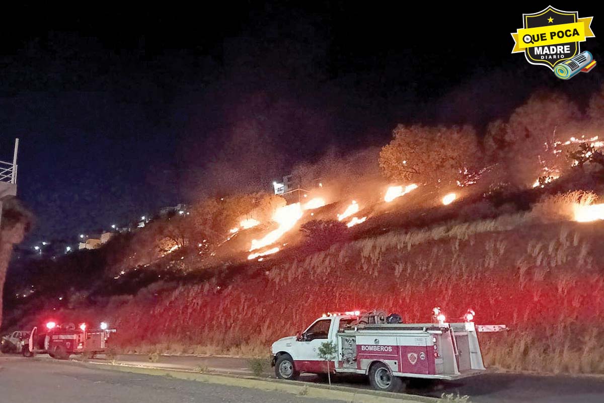 Un incendio de hierba seca fue rápidamente atendido por los bomberos en el Cerro de Las Bolsas, #Zacatecas, donde las fuertes ráfagas de viento y el terreno complicado incrementaban el riesgo de expansión del fuego.