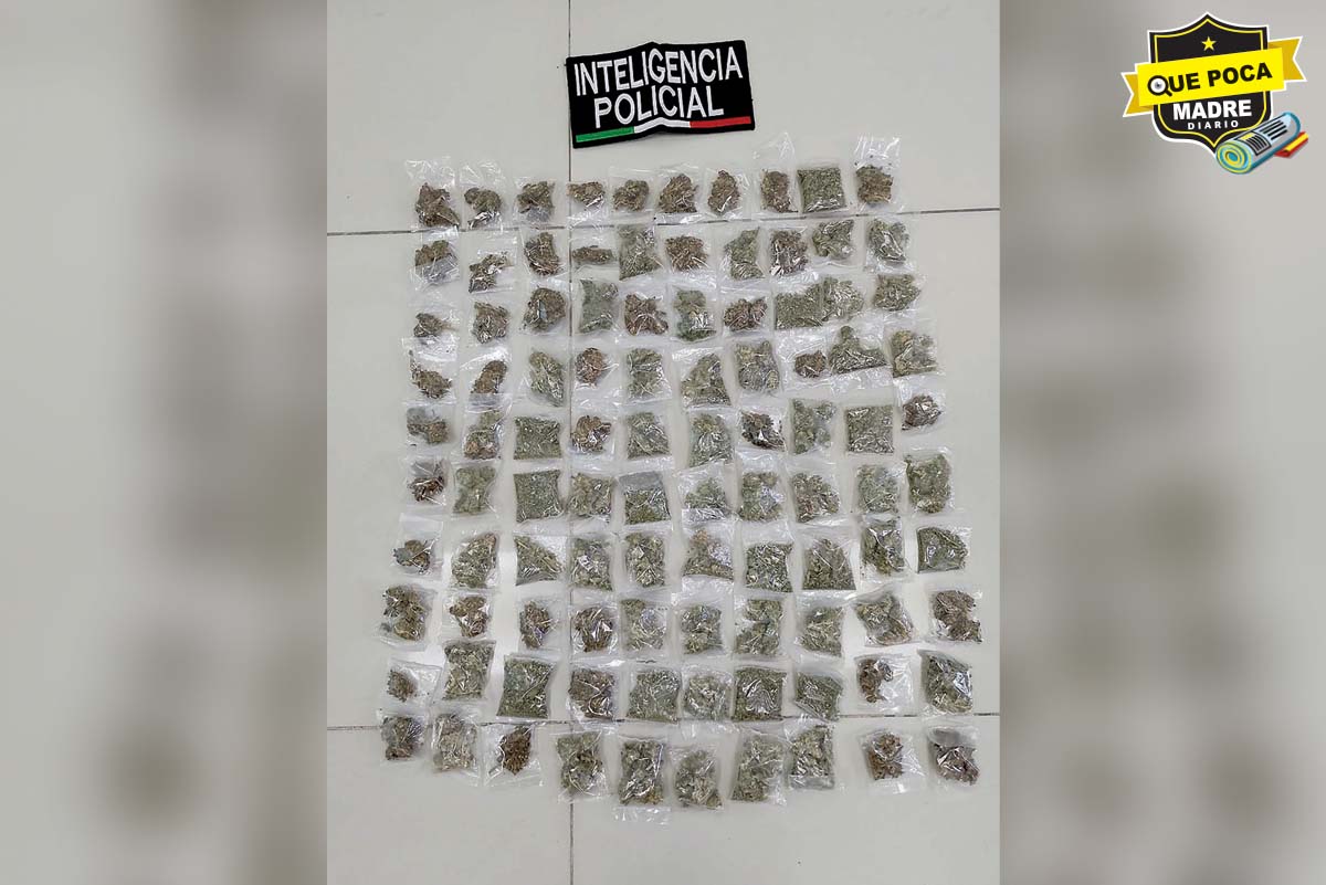 Las autoridades del SSEM detuvieron dos presuntos vendedores de marihuana en la calle Gardenia, colonia 4 de febrero. Después de una revisión les 100 bolsas de plástico con aparente marihuana.