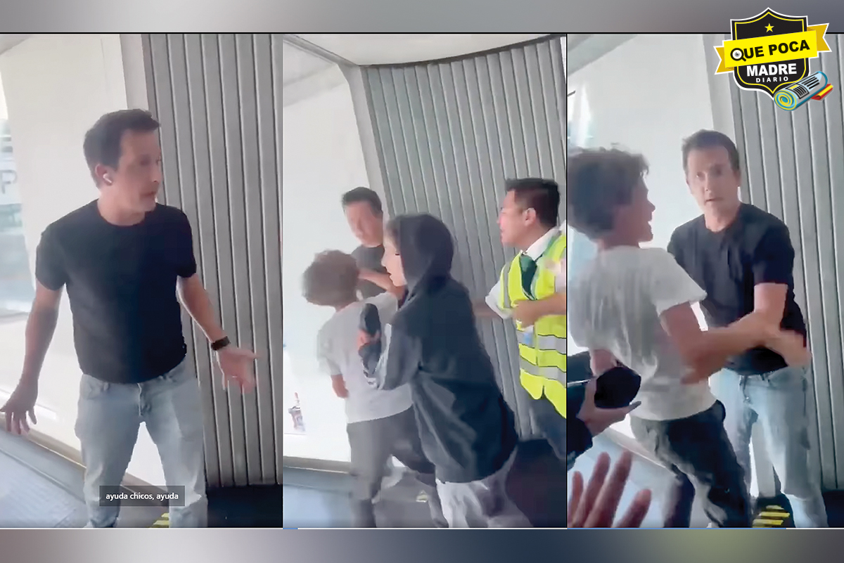 En el video se escucha como uno de los niños le pide a su papá “¡Ya, ya, para ya, papá ya por favor, ya vámonos!”, mientras intentan separarlo del trabajador que acaba de ser golpeado.