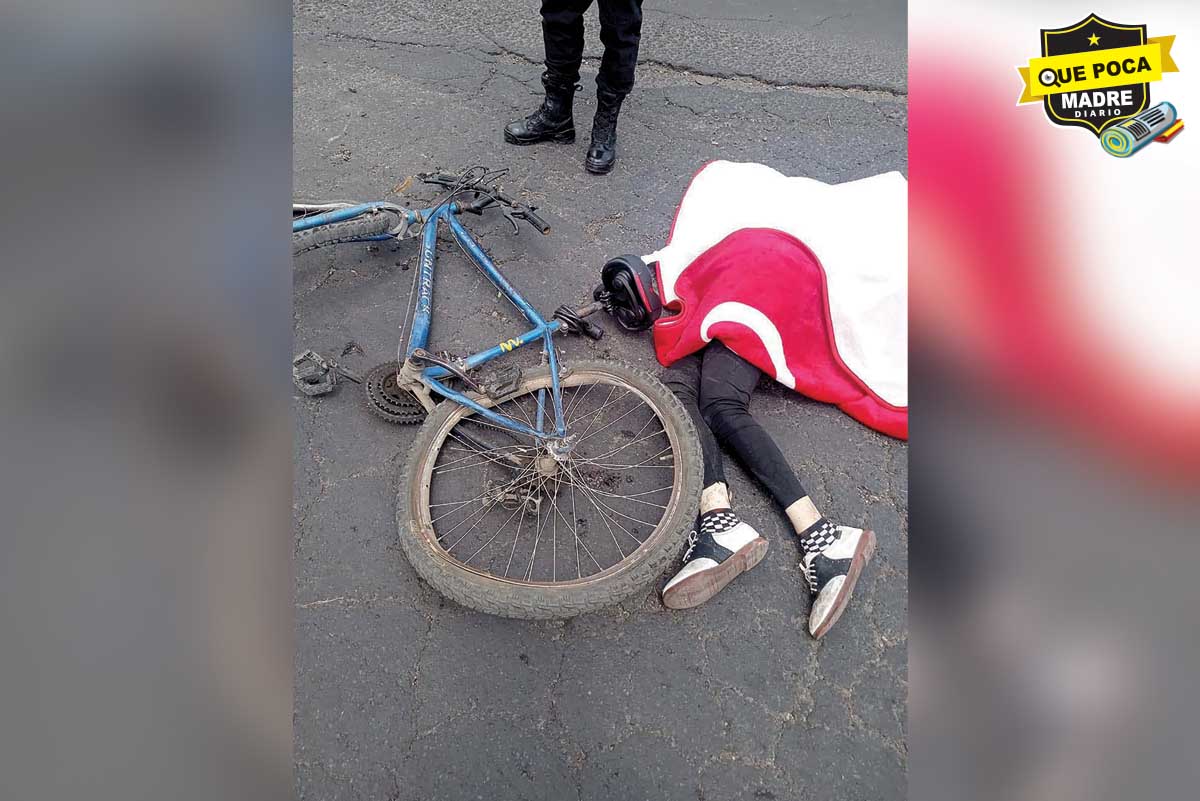 La bicicleta color azul quedó con ambas llantas retorcidas del golpe. Al lado quedó Cinthia, a quien le colocaron una veladora en un vaso y un churro de papel. El chofer fue detenido.