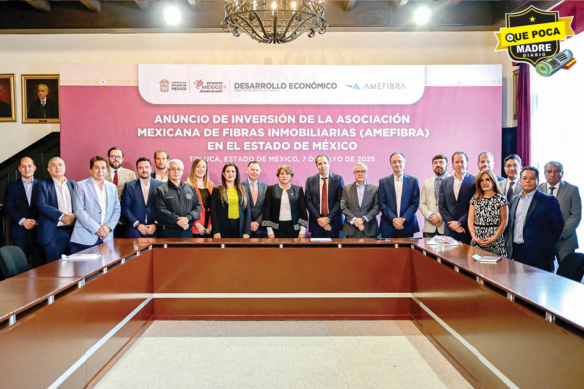 Como parte de la estrategia para fortalecer la economía del Estado de México, la Gobernadora Delfina Gómez Álvarez, anunció una inversión de 5 mil 630 millones de dólares por parte de la Asociación Mexicana de FIBRAs Inmobiliarias (AMEFIBRA), así como la generación de más de 45 mil empleos, que se sumarán a los más de 100 mil puestos de trabajo con los que cuenta actualmente esta Asociación en la entidad.