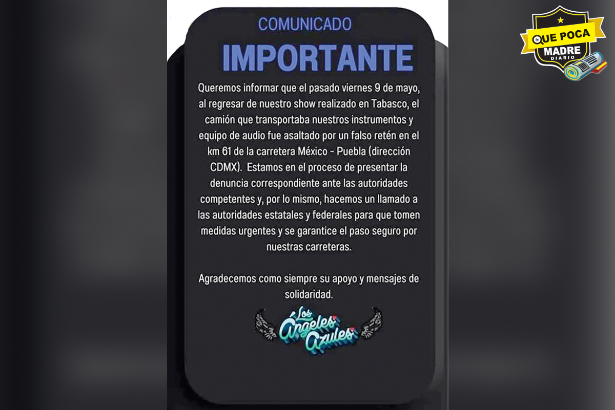 El grupo mexicano de cumbia, “Los Ángeles Azules”, denunciaron en su cuenta oficial de X haber sido víctimas del robo de equipo de su audio e instrumentos musicales.