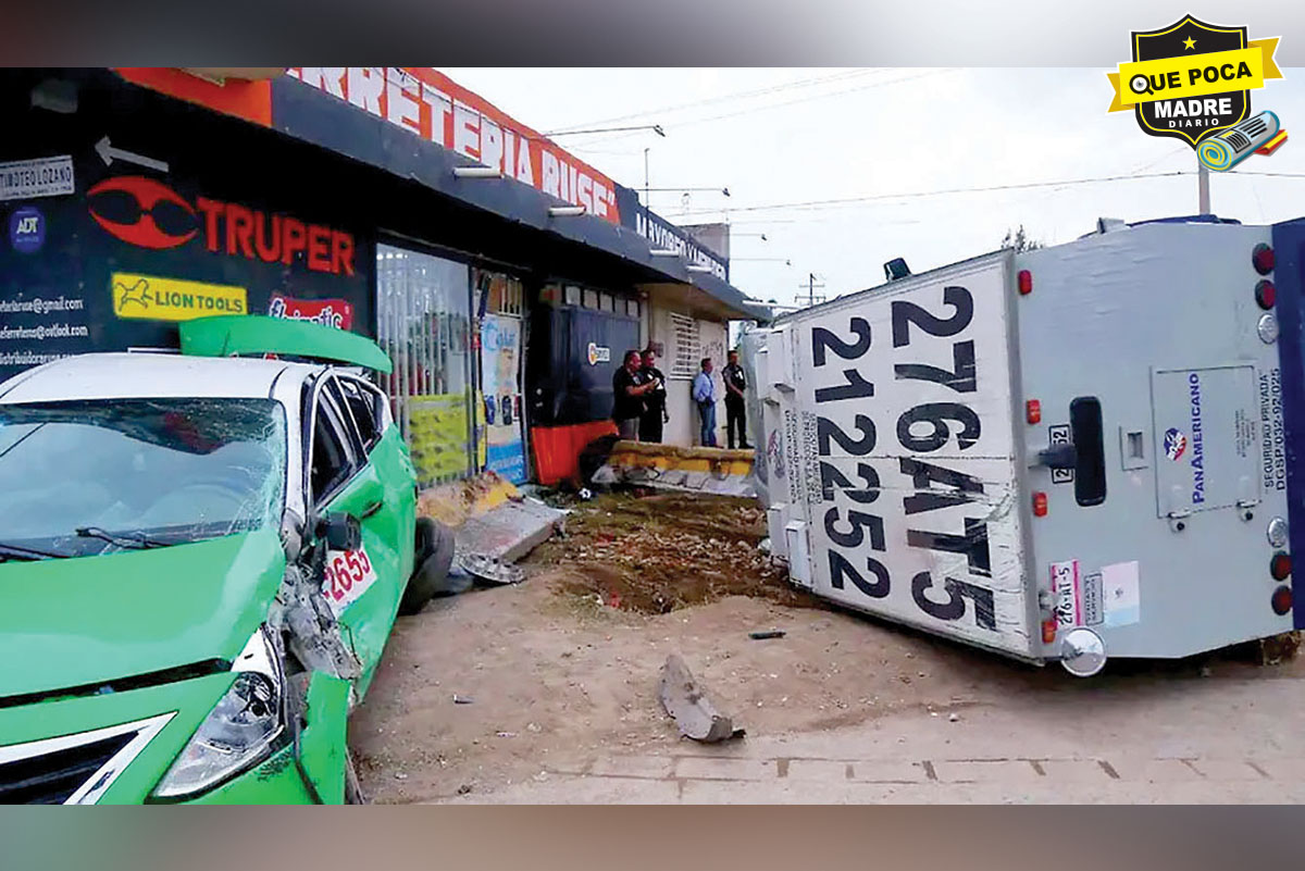 Según testigos, el camión de valores circulaba por el bulevar Timoteo Lozano a alta velocidad cuando, debido al piso mojado por la lluvia, el conductor perdió el control y las llantas se patinaron. El incidente dejó a cuatro custodios y el taxista lesionados.