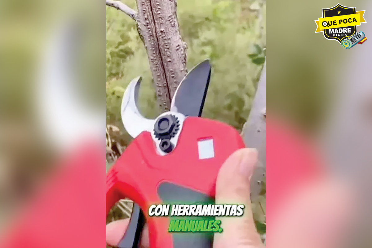“Acabé en el hospital por un mal manejo de uno de los productos que ya puse a prueba, son unas tijeras super potentes que corta troncos”, mencionó mientras compartió las imágenes de la herramienta cortando madera.