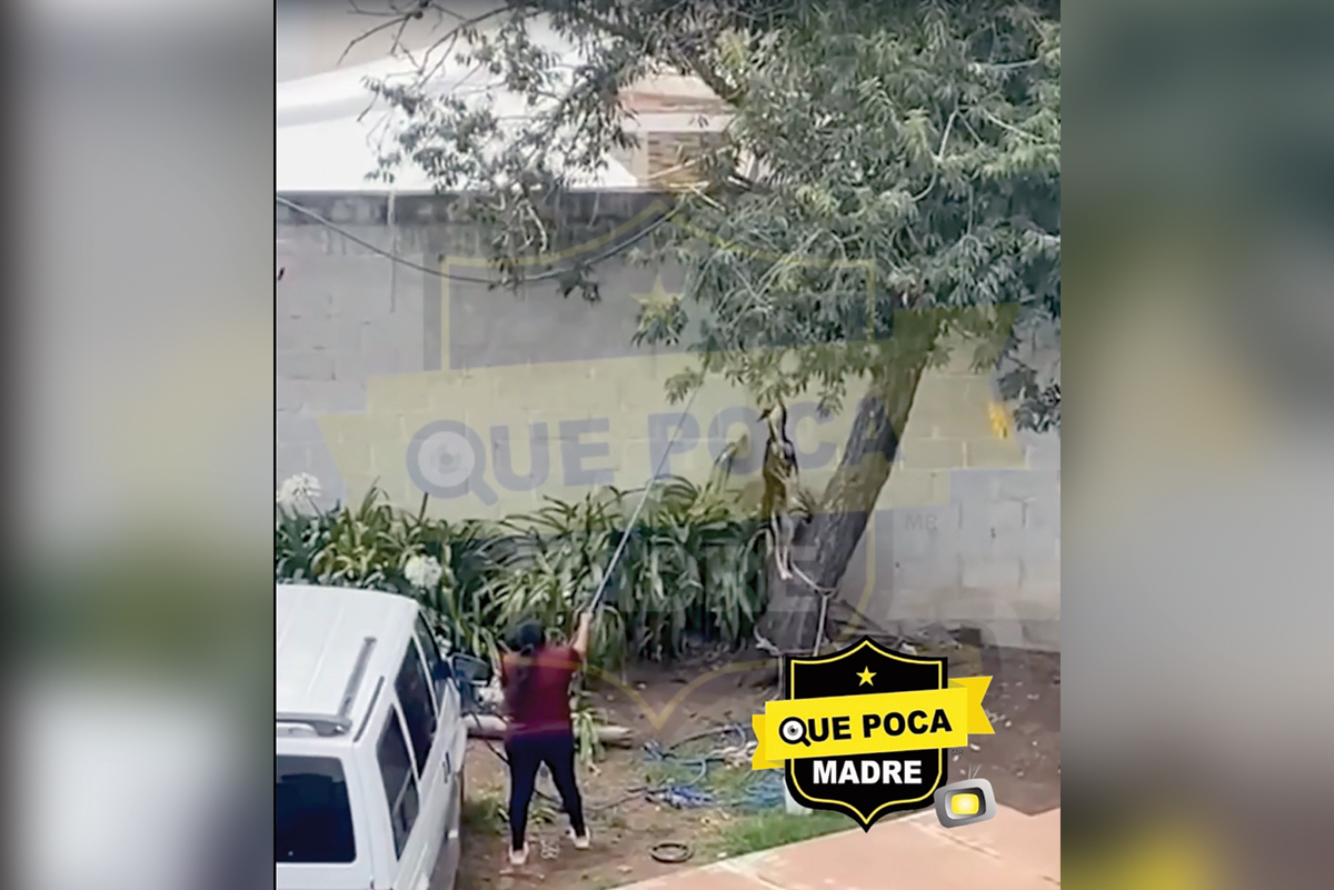 En el video se ve cómo por un lapso de 18 segundos una mujer mantuvo suspendido de un árbol de una altura aproxima de 4 metros a un perro con una cuerda que le ató al cuello.