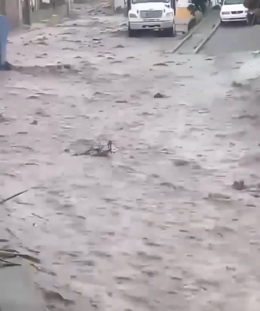 Derivado de las fuertes lluvias de la tarde noche de este jueves 4 de mayo en la zona de Toluca-Tenango, Calimaya resultó severamente afectado tras el desbordamiento del río el Arenal, la fuerte corriente se desbordó a lo largo de varias cuadras.