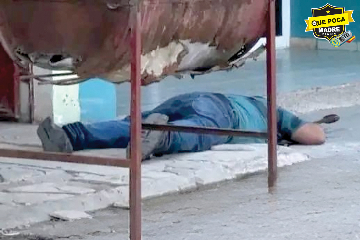 La víctima vestía pantalón de mezclilla y playera azul, mismo que quedó boca abajo luego de ser sorprendido.