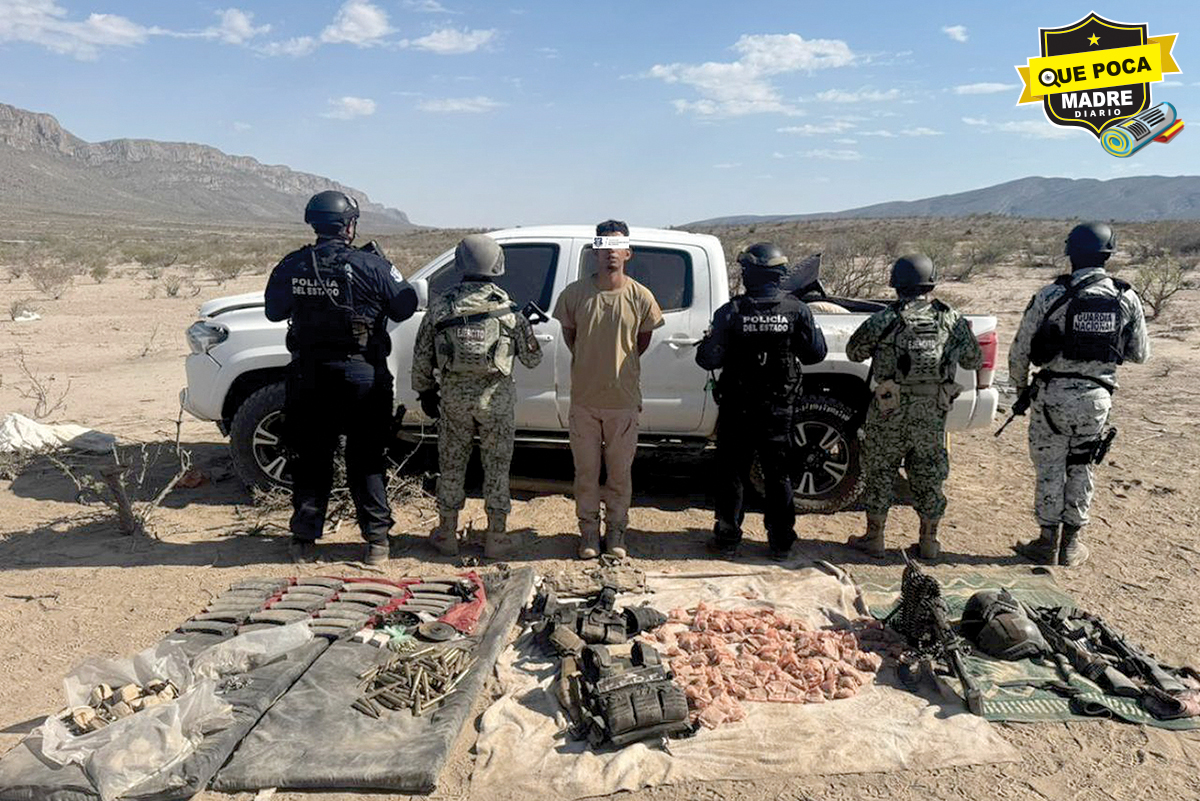 ¡Agárrense, Chihuahua! La Secretaría de Seguridad Pública del Estado, junto con la Sedena y la Guardia, le puso un alto a Manuel Eduardo C. R., de 25 años, presunto miembro de un grupo delictivo en Ojinaga. ¡Este sujeto andaba en una camioneta Toyota Tacoma blindada y traía consigo un verdadero arsenal!