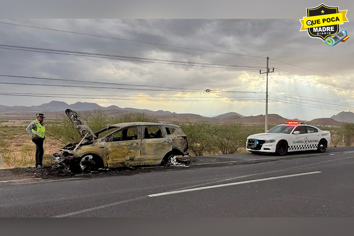 Se registró un incendio vehicular sobre la carretera Chihuahua-Delicias, a la altura del kilómetro 204, muy cerca del acceso conocido como la Puerta de Chihuahua.