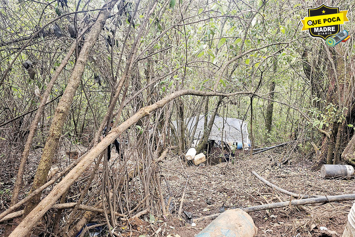 Elementos de las SSEM, Defensa y Guardia Nacional (GN), localizaron un predio donde se encontraba un aparente laboratorio clandestino para la elaboración de sustancias ilícitas.