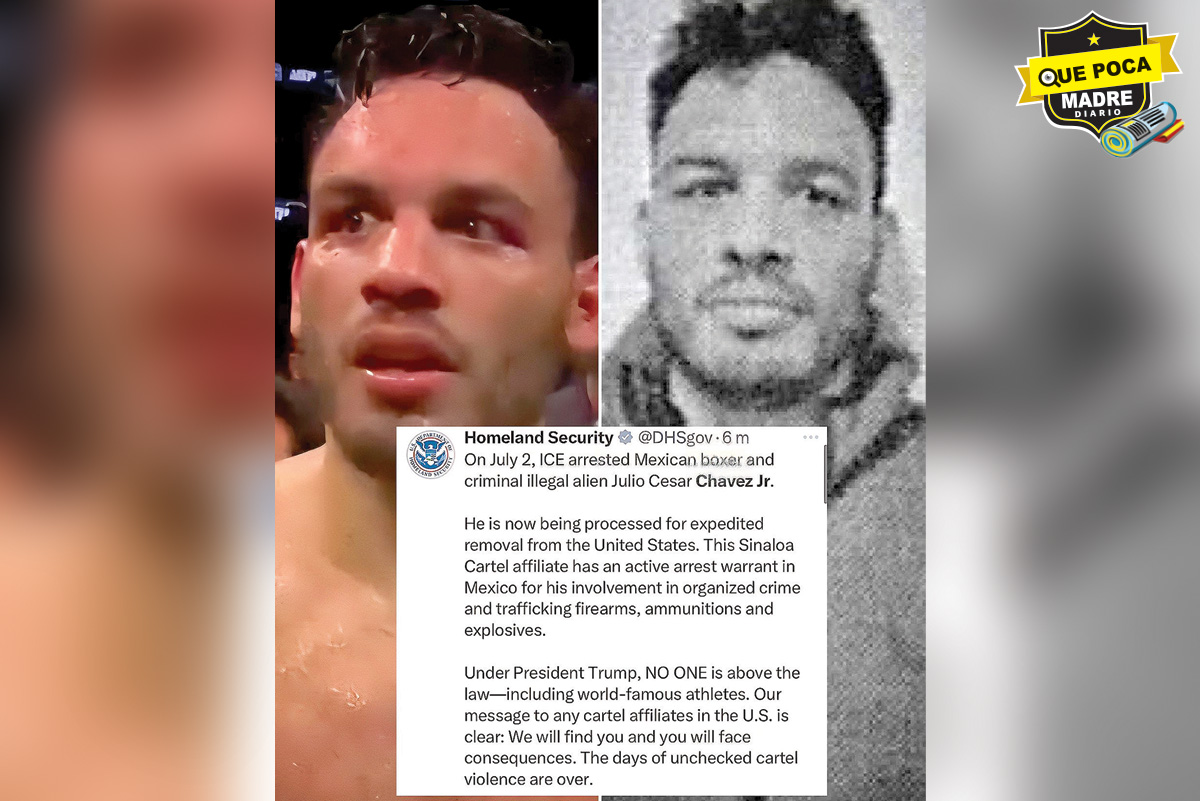 ¡Quiubo!, buenas, buenas, mis amigos lectores de Que Poca Madre Diario, en esta calumnia de esta semana les quiero hablar sobre lo dantesco, esta semana se lo vamos a dar a la detención de Julio César Chávez jR, ya que El Departamento de Seguridad Nacional de Estados Unidos anunció el arresto por parte de ICE del boxeador mexicano Julio César Chávez Jr., por presuntamente estar afiliado al Cártel de Sinaloa, y es que este cuate, simplemente daba lastima y pena, y si, no digo que como padre odies a tu hijo porque jamás pero si, avergonzó a su padre y a la gran carrera de este, no fue bueno ni pal boxeo, se supo de sus abusos con sustancias, se metía hasta los dedos y ahora ligado a un cartel, no lo dudaría, esta cabrón, he aquí la prueba de que no siempre los hijos ni siguen el ejemplo del padre y ni siquiera los superan.