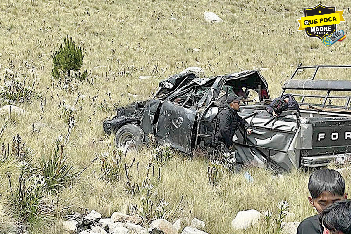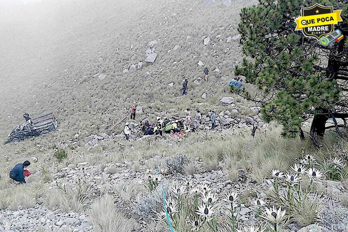 Se registró la volcadura y caída a un barranco de una camioneta Ford Pick-up negra que transportaba turistas en el camino al Nevado de Toluca.