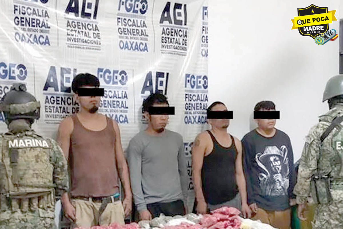 La Fiscalía General del Estado (FGEO) logró la vinculación a proceso de cuatro hombres, identificados como H.L.P., M.E.L.P., B.U.L.P. y D.L.P., por delitos contra la salud. La detención se dio en el municipio de Santiago Xanica, en la región de la Costa, tras un operativo de la Agencia Estatal de Investigaciones (AEI) y otras corporaciones de seguridad.