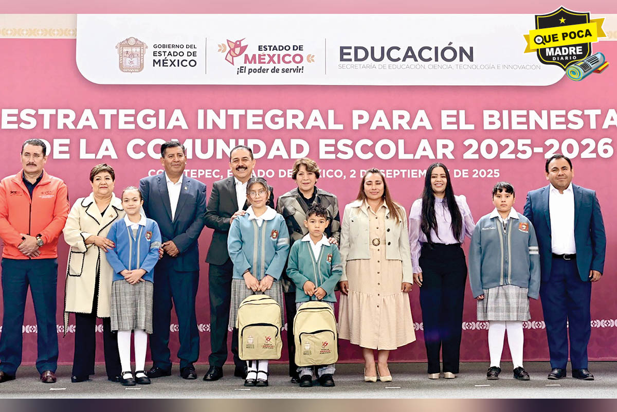 La Gobernadora Delfina Gómez inició la entrega de útiles escolares y libros de texto a 2.8 millones de alumnos de preescolar, primaria, secundaria y telesecundaria que estudian en 19 mil planteles de los 125 municipios de la entidad y son atendidos por 143 mil maestros. Desde la Escuela Primaria “Paulino Martínez”, señaló que la Estrategia Integral para el Bienestar de la Comunidad Escolar 2025-2026 incluye entrega de mobiliario, infraestructura y la presentación del Protocolo Mochila de Paz y Prevención, para garantizar la seguridad de los estudiantes.
