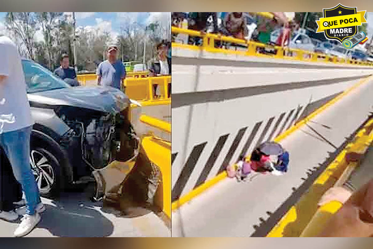 Una mujer que iba como acompañante de un biker, salió proyectada y cayó varios metros adelante sobre el desnivel de la Glorieta González Bocanegra, en San Luis Potosí, esto después de que la conductora de una camioneta los impactara y terminara estrellándose en el muro de contención.