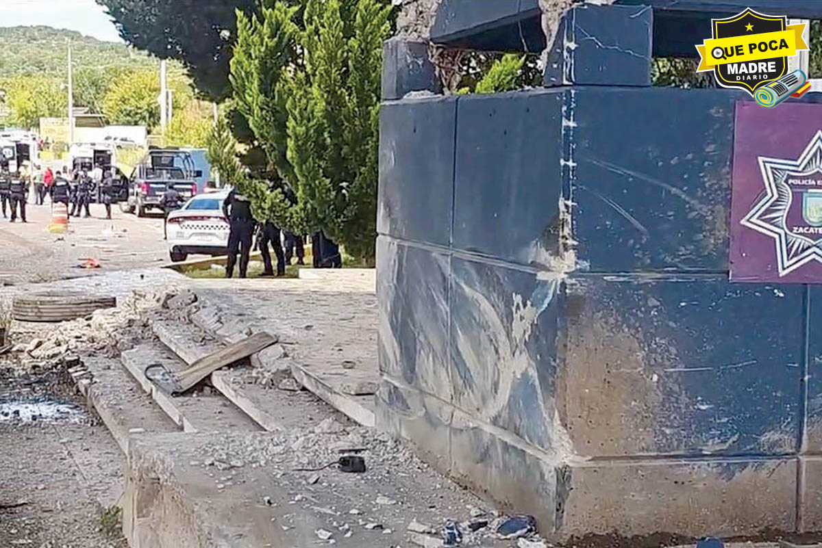Una pipa aparentemente sin frenos colisionó contra la caseta de vigilancia de la Unirse y posteriormente impactó con un tráiler de doble remolque en la carretera Sombrerete–Durango, a la altura de Ojo de Agua.