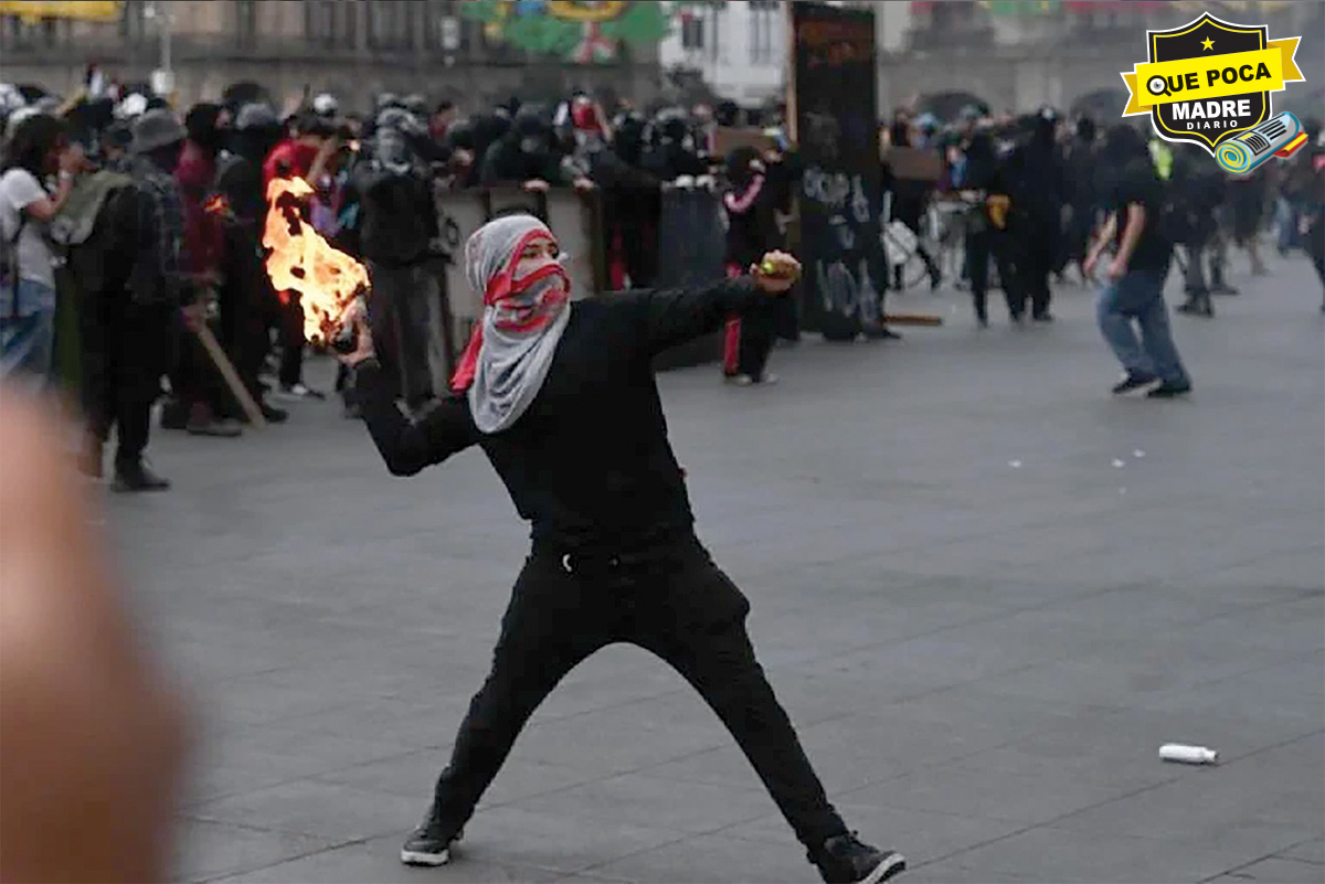 Integrantes del bloque negro realizaron actos de rapiña en una tienda Comex sobre Eje Central, de donde sustrajeron latas de aerosol. En el mismo corredor se registraron pintas y la quema de solventes en el bajo puente de Eje Central y Paseo de la Reforma, donde encendieron fuego contra las paredes.