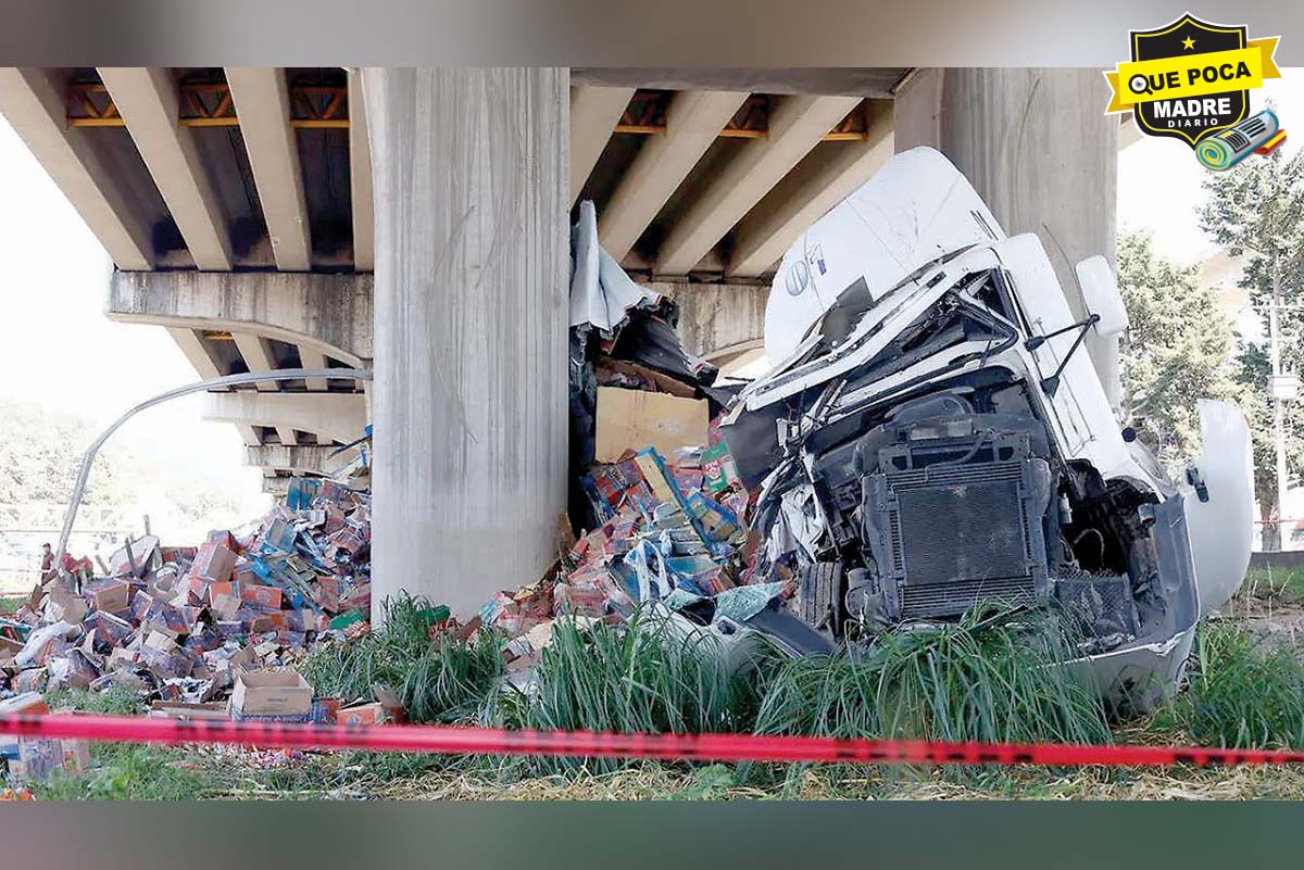 El vehículo de carga se habría quedado sin frenos y terminó impactándose contra uno de los pilares que sostienen el viaducto elevado de la autopista Lerma–La Marquesa. Tras el choque, se reportó el derramamiento de la mercancía, esparciendo cientos de cajas sobre el terreno bajo el puente.