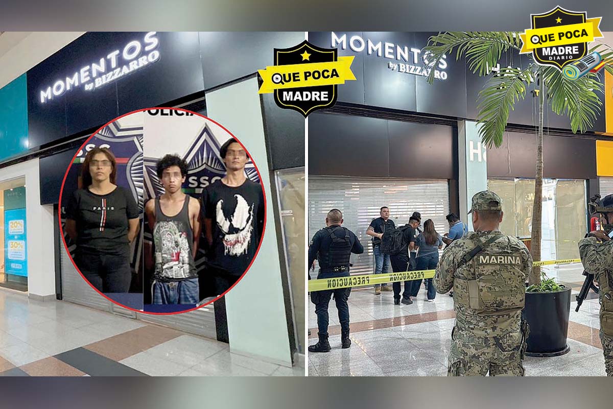 Gracias a las cámaras del C5, primero cayó la mujer, Jessica “N”, sobre la avenida Tules, a quien, de paso, le aseguraron 45 bolsitas de marihuana y cartuchos 9 mm. Después, en otra acción coordinada, fueron detenidos Ángel Emiliano “N” y Ali Alexander “N”. ¡Y ojo! Este ya es el cuarto intento de robo a joyerías de esa misma cadena en la plaza en lo que va del año.