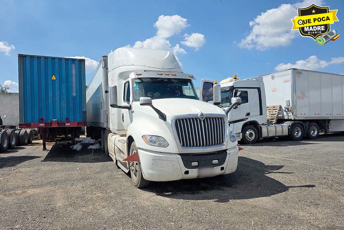 Fueron asegurados tres tracto camiones de las marcas International y Freightliner; así como un portacontenedor y tres Dolly, cinco cajas secas, una de ellas cargada con material de una empresa de paquetería y autopartes para motocicletas.
