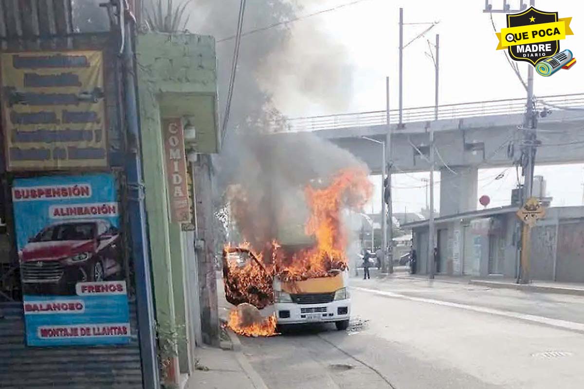 Una unidad de transporte público se incendió mientras circulaba por la calle Justo Sierra, en Teyahualco, Tultepec. La unidad, aparentemente vacía, comenzó a incendiarse por lo que vecinos solicitaron la intervención de los servicios de emergencia.
