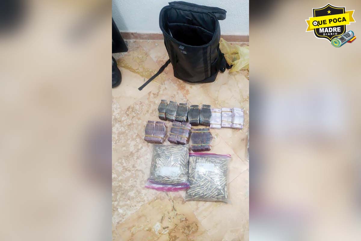 El operativo se dio durante labores de inspección, donde los agentes detectaron a tres sujetos moviendo varias maletas sospechosas. ¡Y la revisión fue un home run! Se logró el aseguramiento de un arma larga, 3 mil 308 cartuchos de distintos calibres, 50 cargadores, cinco portacintas para cartuchos calibre 5.56 milímetros, además de 32 bolsas con aparente droga sintética con un peso aproximado de 30 kilogramos y $247 mil 120 pesos en efectivo.
