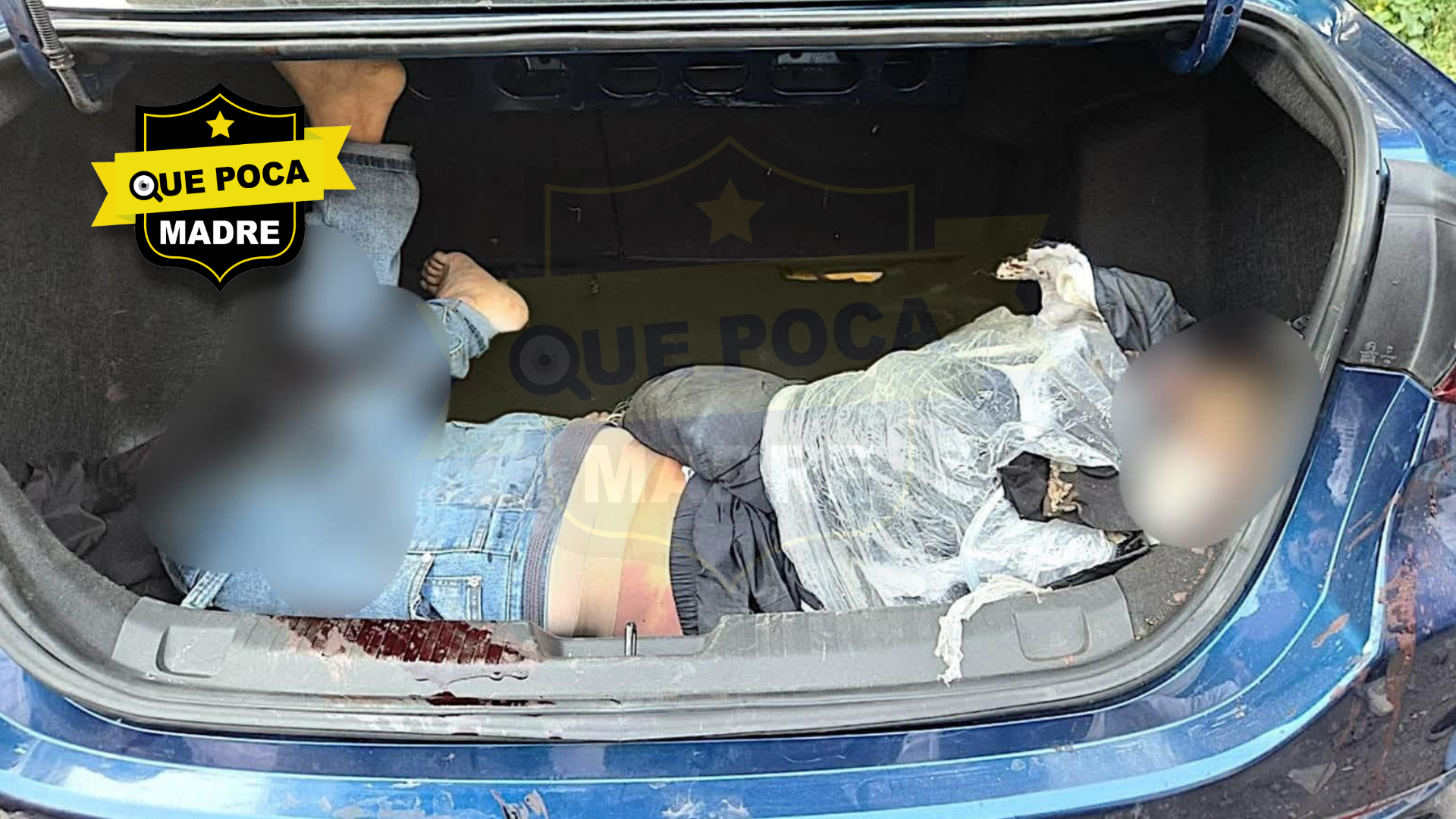 Al acudir al sitio, elementos de la Policía Municipal localizaron un auto Onix Premier color azul, con placas PCP-1797 del Estado de México, y al abrir el portaequipaje encontraron los cuerpos de dos hombres, ambos con huellas visibles de violencia.