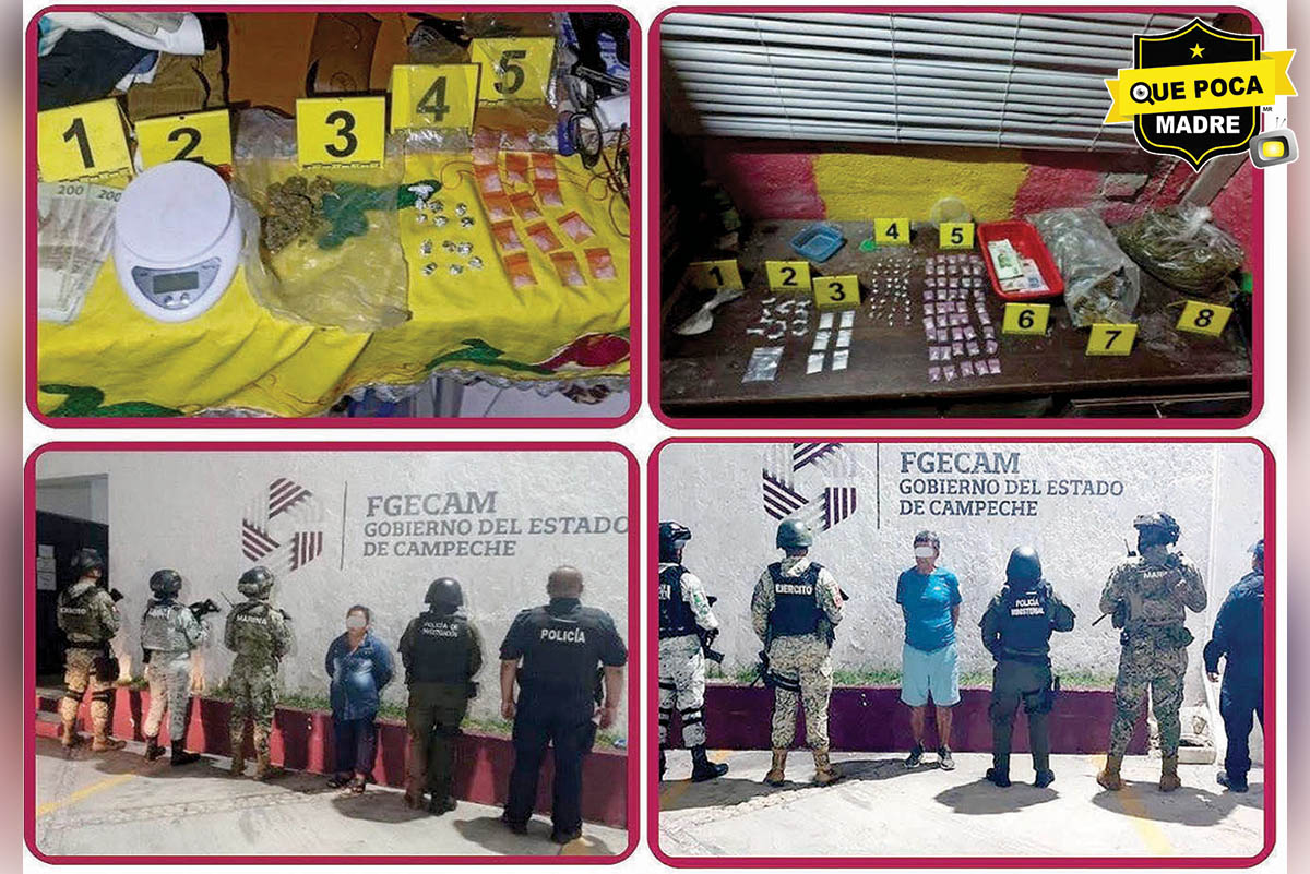 La Fiscalía General del Estado (FGECAM) asestó un golpe al narcomenudeo al ejecutar dos órdenes de cateo en las colonias Plan Chaac y Leovigildo Gómez, logrando la detención de un hombre y una mujer y el aseguramiento de drogas.