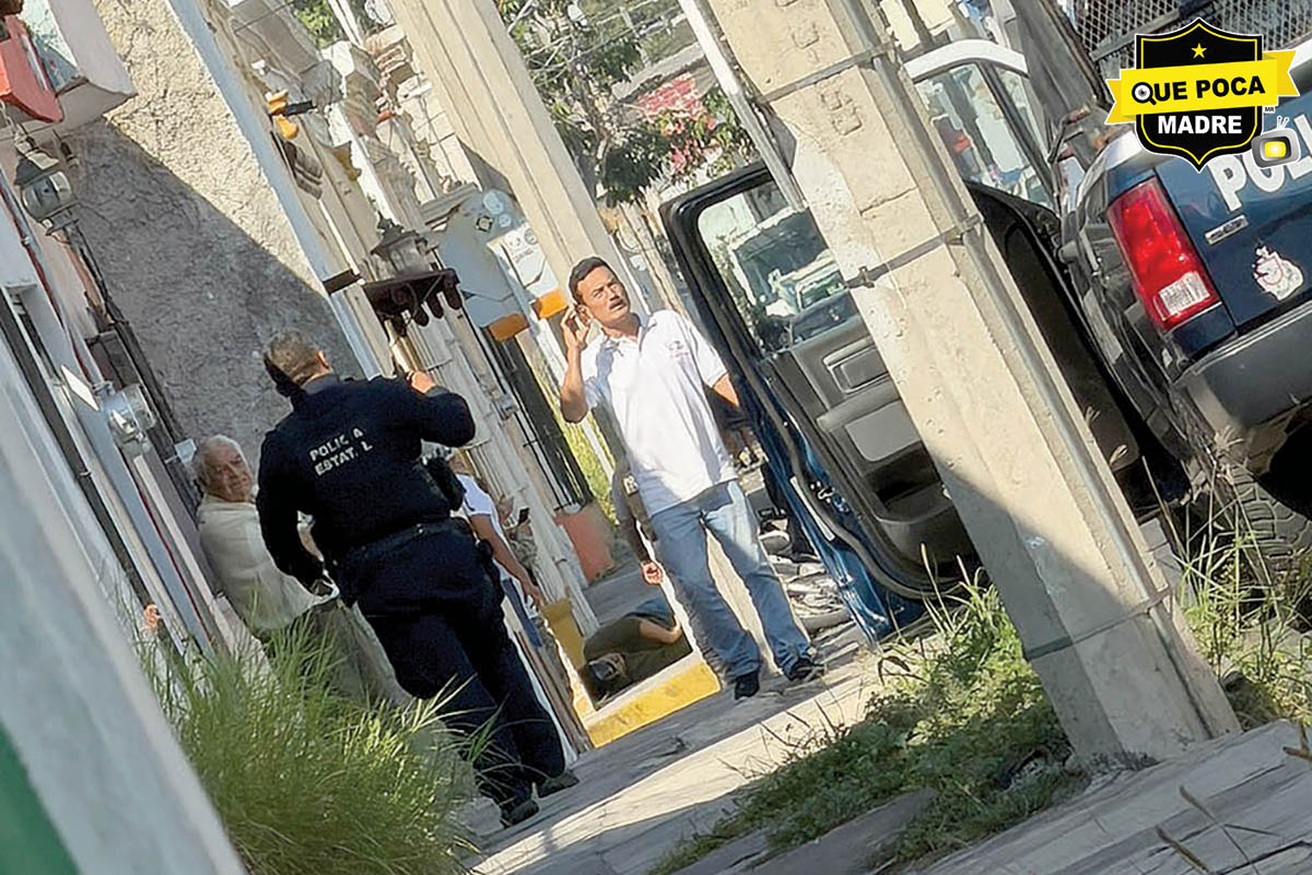Al ser trasladado al Ministerio Público, se metió un dedo en la boca y se peinó las cejas con saliva; al bajar de la patrulla, se tropezó y chocó contra la puerta de la unidad oficial, lo cual evitó su caída al suelo.