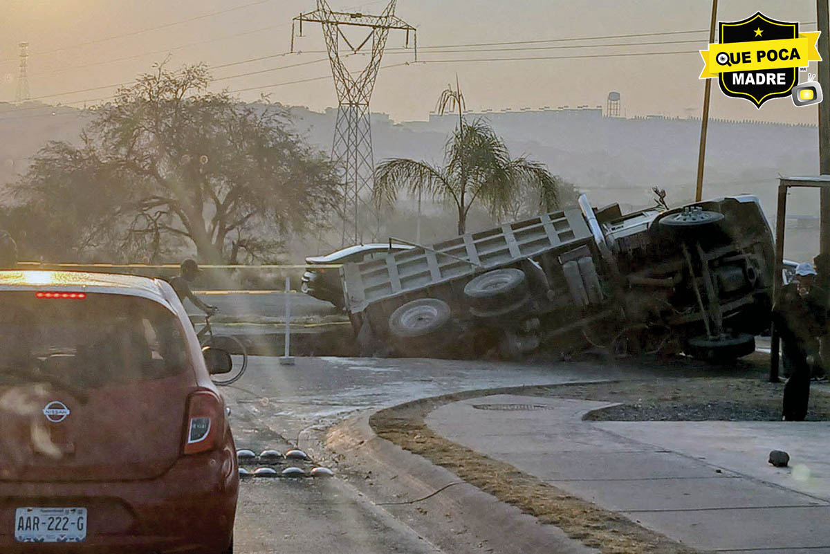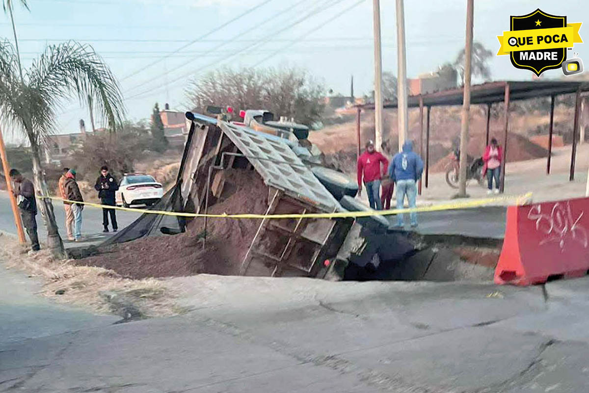 Un camión de volteo, cargado con aproximadamente 10 toneladas de arena y grava, cayó esta tarde en un socavón que se abrió sobre la Avenida Boulevard Guadalupano, en el fraccionamiento La Florida, en la ciudad de Aguascalientes. Elementos de la Policía Municipal y Protección Civil acudieron al cruce con Martín Pescador, donde encontraron la unidad recostada sobre su lado izquierdo dentro del hundimiento. Según el conductor, el camión comenzó a hundirse de manera repentina mientras estaba detenido, por lo que logró salir a tiempo para ponerse a salvo.