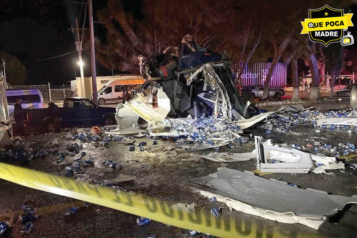 Un aparatoso accidente vial en el entronque al ejido Gómez Farías, en Saltillo, Coahuila, dejó como saldo un hombre fallecido y otro herido, informó la Guardia Nacional. De acuerdo con el reporte, una camioneta Ford le quitó el paso a un camión de la empresa 2 Factor, cuyo operador, Isaías “N”, perdió el control tras el impacto, invadió el carril contrario y chocó de frente contra un tractocamión que transportaba cerveza. Isaías murió en el lugar, mientras que el chofer del camión cervecero fue trasladado a un hospital de Saltillo.