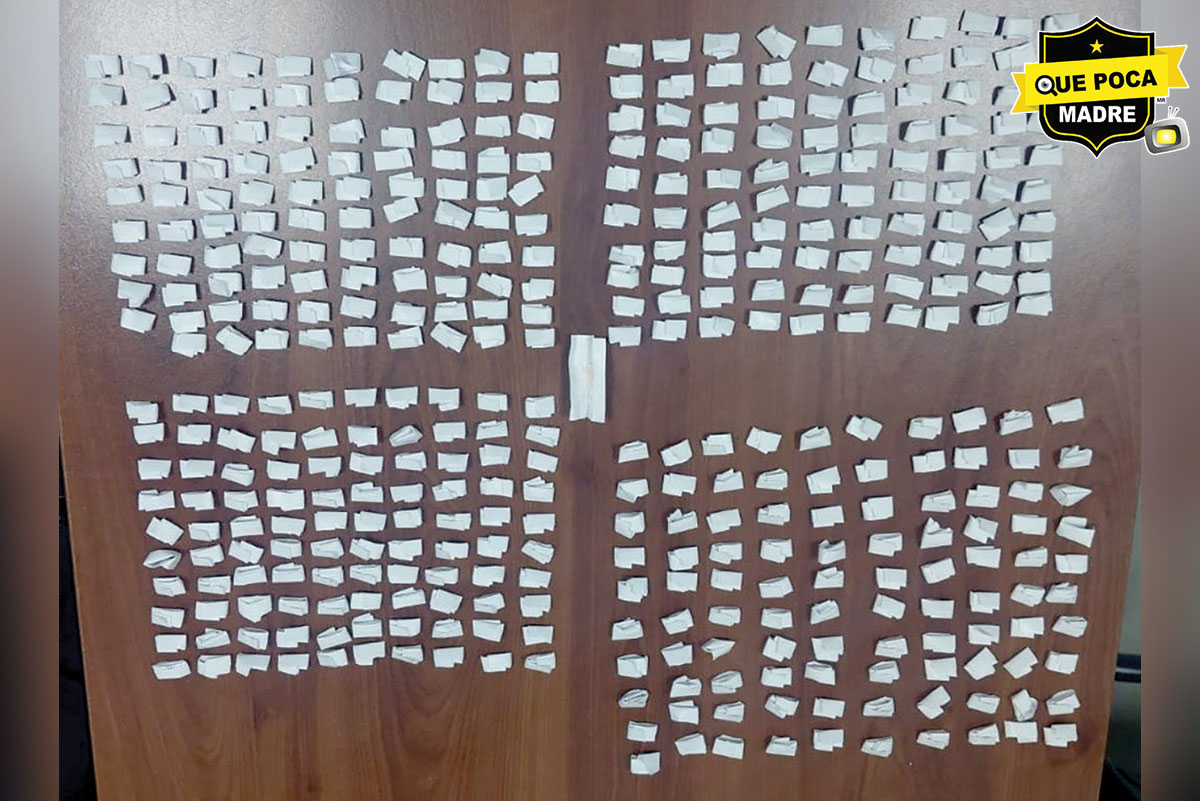 Al realizar una revisión preventiva encontraron en la bolsa derecha de la chamarra de uno de los individuos 400 dosis de papel que almacenaban una sustancia granulada con características de la cocaína en piedra.
