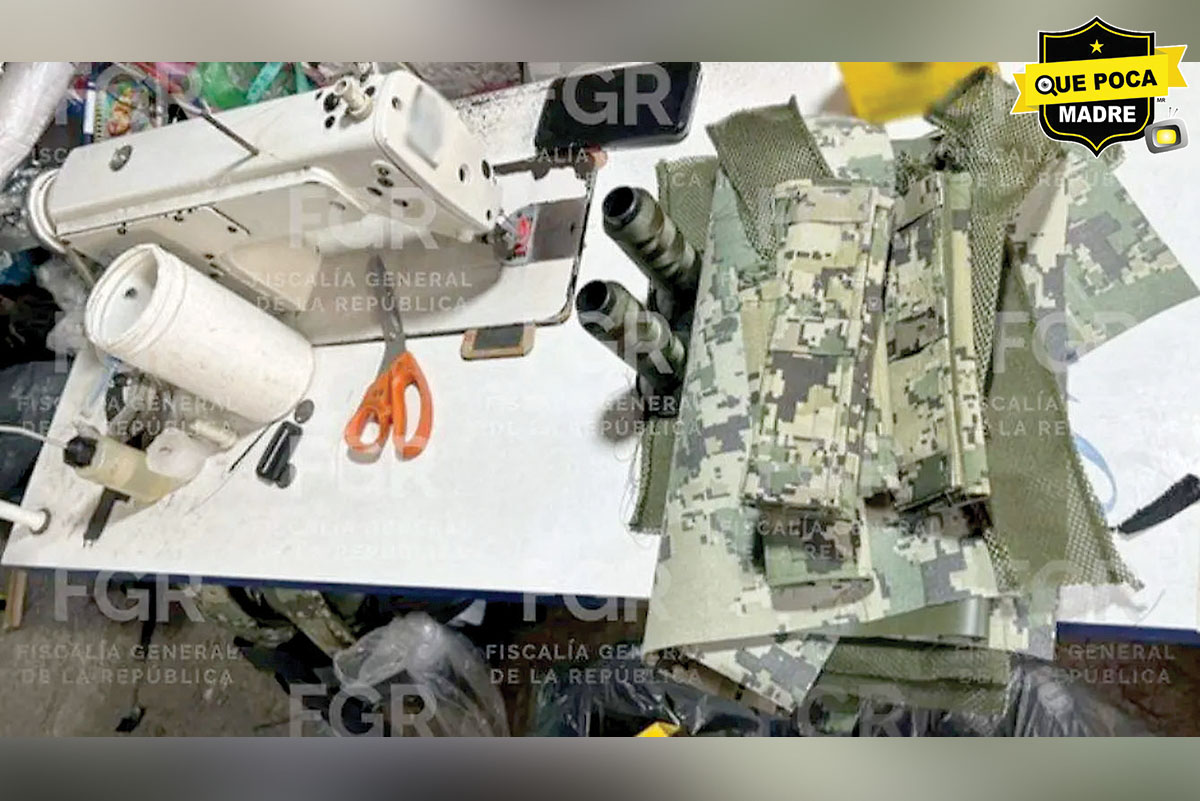 Elementos de la FGR decomisaron seis máquinas de coser tipo industrial, una máquina cortadora de tela, chalecos, algunos con insignias de la Policía Estatal, un rollo de tela de color café con verde y rojo camuflado, así como bordados con el nombre de una institución de las Fuerzas Armadas de México.