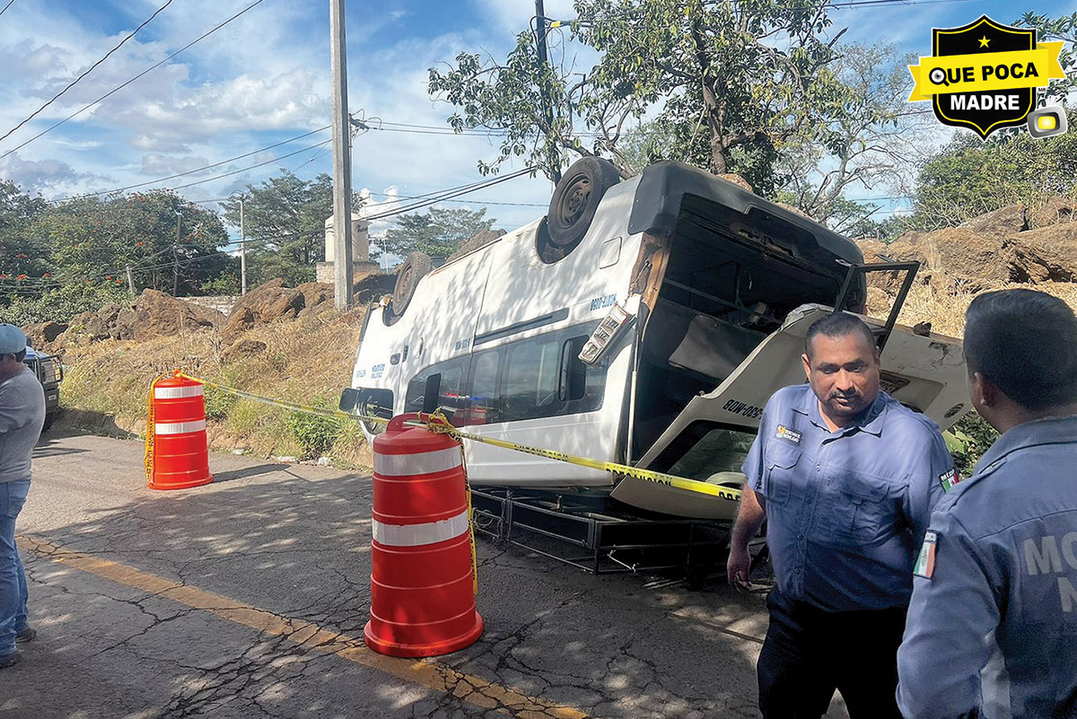 Este domingo se registró un hecho de tránsito en la localidad de Francisco I. Madero (Puga), donde una combi de transporte público volcó sobre la avenida México.