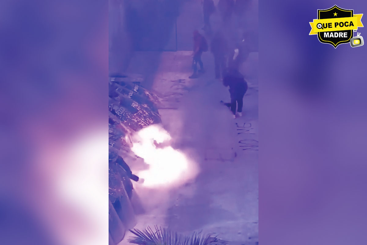 En un momento, al término de la manifestación, personas encapuchadas se acercaron a la fila de elementos policiacos que protegían el Palacio de Gobierno, y con un aerosol y un encendedor, prendió fuego a los elementos de la Policía Estatal. Otra agente también sufrió quemaduras.