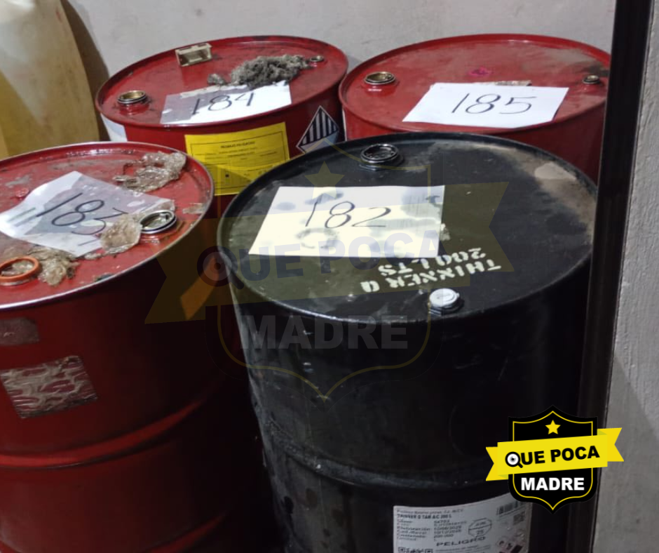 Durante el cateo, los agentes localizaron 173 bidones de entre 50 y 60 litros, cuatro contenedores de mil litros y ocho tambos de 200 litros, todos con hidrocarburos cuya procedencia aún se investiga. Tras las diligencias, el predio quedó sellado con la leyenda “Inmueble Asegurado” como parte de una carpeta de investigación federal.